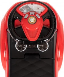 multimediální volant (3 melodie + klakson), úložný prostor pod sedadlem, omezené otáčení řídítek
