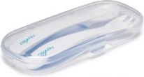 Lehký set dětských příborů v praktické krabičce pro hygienické a samostatné stolování na cestách i doma. Ergonomické rukojeti, hygienická opěrka proti kontaktu se stolní plochou a snadná údržba v ruce i v myčce.