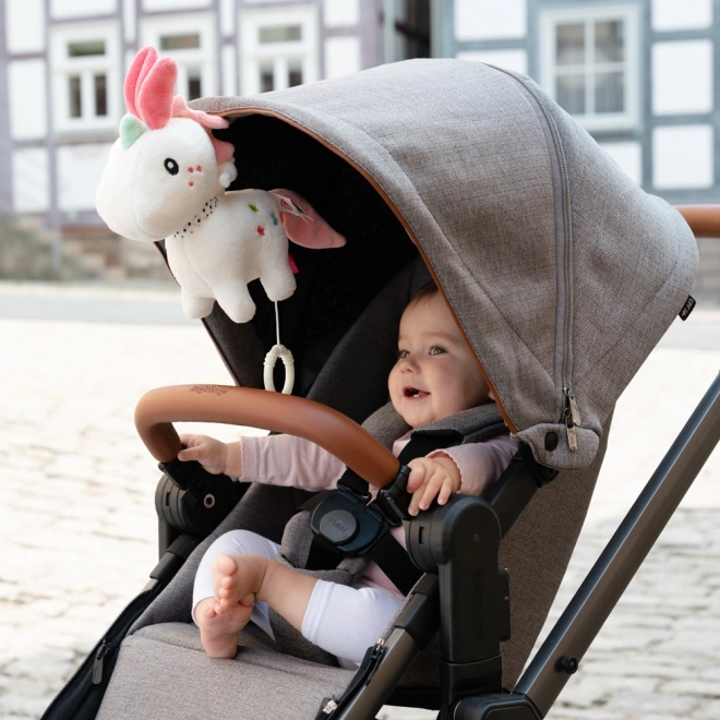 Roztomilý hudební jednorožec z kolekce Aiko & Yuki uklidňuje miminko příjemnou ukolébavkou a poskytuje jemnou smyslovou stimulaci. Díky praktickému kroužku ho snadno připevníte na kočárek, postýlku či autosedačku. Hebký materiál vybízí k mazlení a stužky i textury rozvíjejí jemnou motoriku.