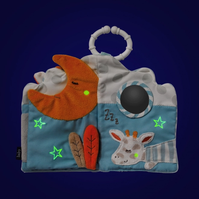 Uvnitř knížky najdete šustící papír pro smyslovou stimulaci, zrcátko pro sebepoznávání a pískací hračku pro zábavu. Svítící prvky jemně prosvětlí tmu a pomohou rozptýlit strach ze spánku. Díky poutku ji snadno připevníte k výbavě na cesty – perfektní parťák do kočárku i postýlky.