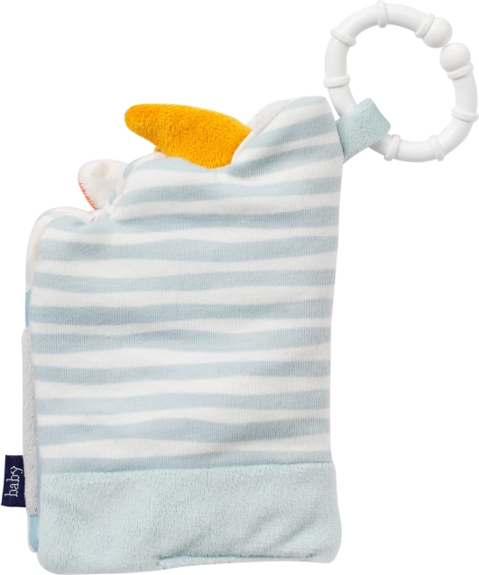 Uvnitř najdete šustící papír, pískací prvek a zrcátko, které podporují rozvoj zraku, sluchu a jemné motoriky.