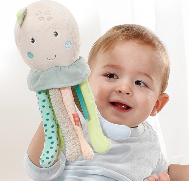 Roztomilá hudební hračka ve tvaru chobotnice z kolekce DĚTI MOŘE přináší miminkům už od narození pocit klidu a bezpečí. Po natažení se rozezní jemná ukolébavka, která pomůže navodit pohodovou atmosféru při usínání i během dne.