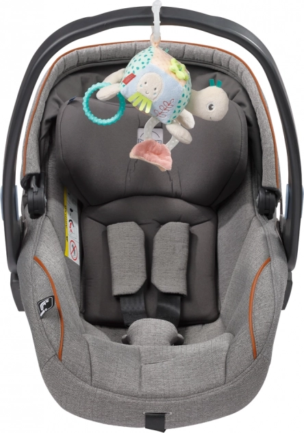Praktický C‑kroužek umožňuje rychlé připnutí na madlo kočárku, autosedačky nebo na hrazdičku. Kombinace měkkého kousátka, chrastítka, zvonečku a šuštivých prvků udrží pozornost dítěte a podpoří jeho přirozenou zvídavost.