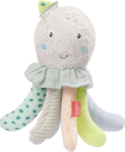 Koupání bude odteď ještě zábavnější. Chobotnice s integrovaným míčkem plave na hladině, povzbuzuje děti k objevování vody a podporuje rozvoj smyslů i jemné motoriky. Kombinace měkkých látek – froté, mušelín, velur, buklé a potištěná tkanina – je příjemná na dotek a šetrná k citlivé dětské pokožce.