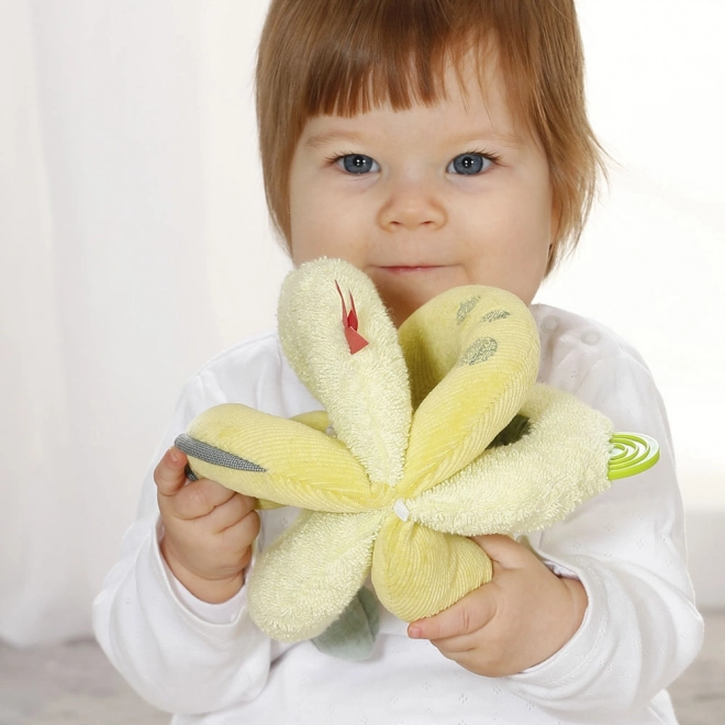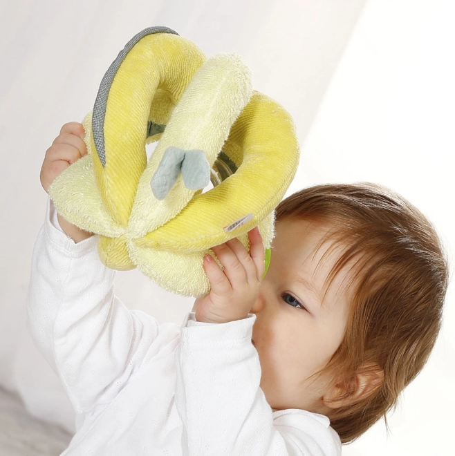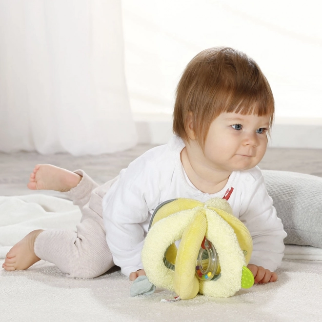 Integrované chrastítko, pískátko a šustící papír rozvíjejí sluch i hmat a dělají z každého pohybu zábavný objev.