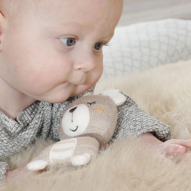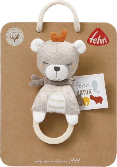 Plyšový medvídek chrastítko s dřevěným kroužkem FEHNNATUR
