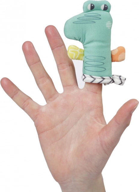 Roztomilý maňásek na prsty ve tvaru krokodýla podporuje představivost a jemnou motoriku při vyprávění příběhů.