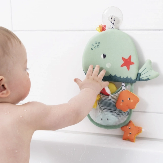 Kapsář do vany Splash Play ve tvaru velryby přináší pořádek i zábavu do každého koupání. Snadno jej připevníte pomocí přísavky na hladký obklad či vanu a všechny drobné hračky uložíte do prostorné síťky, která je prodyšná a napomáhá rychlému schnutí.