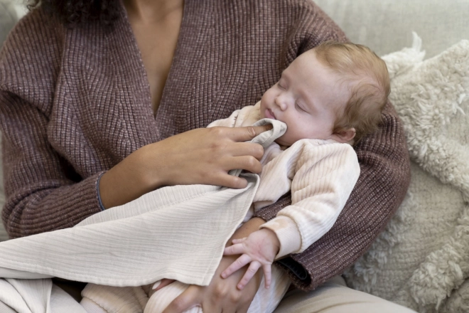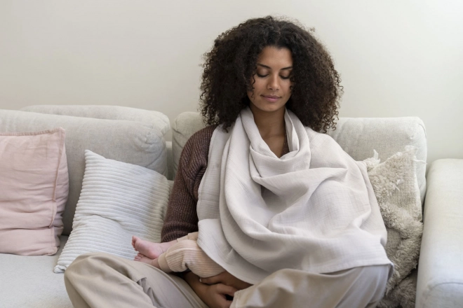 Kojicí deka Mom’n Play Tetra Almond kombinuje pohodlí, soukromí a bezpečnost. Je vyrobena ze 100% organické bavlny, která je prodyšná, měkká a šetrná k citlivé dětské pokožce. Díky praktickému silikonovému kroužku ji během vteřiny upevníte kolem krku a získáte diskrétní zónu pro kojení doma i na cestách.