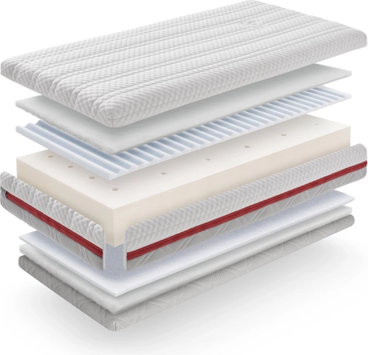 Jádro Aquapur® s otevřenými buňkami a vrstva Airfresh 3D podporují proudění vzduchu, snižují vlhkost a omezují hromadění CO2 pro bezpečnější spánek.
