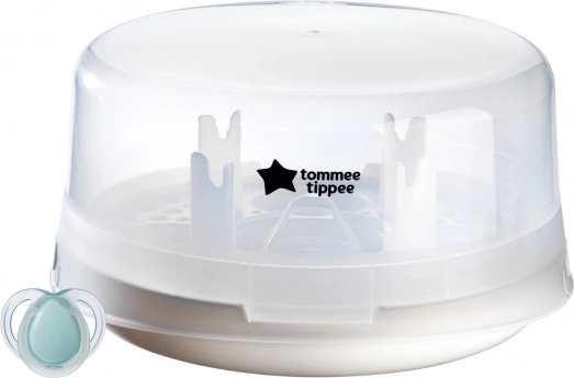 Lehký a kompaktní parní sterilizátor Tommee Tippee Closer to Nature nabízí rychlou sterilizaci až 4 lahví a doplňků během 4–8 minut. Obsah zůstává sterilní po dobu 24 hodin.