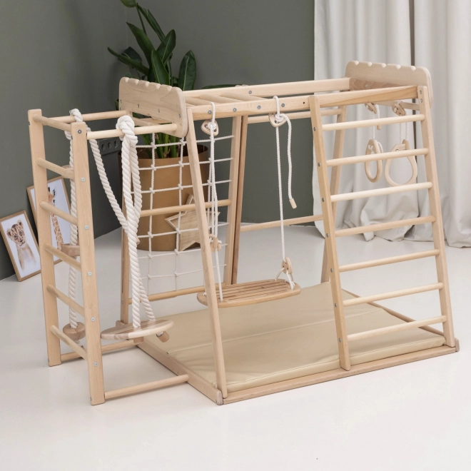 Béžová Montessori žíněnka pro domácí hřiště. Podporuje pohybové aktivity díky bezpečné a pohodlné pěnové konstrukci.