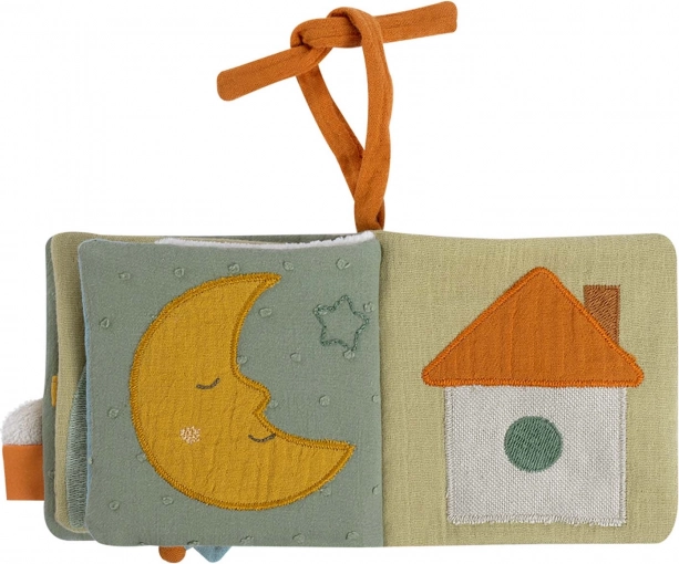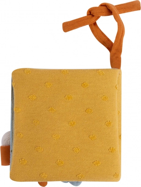 Díky kompaktním rozměrům 11 × 11 cm a poutku pro zavěšení je ideální do kočárku, autosedačky i postýlky. Knížka je pratelná na 30 °C a vyrobená s důrazem na kvalitní materiály včetně výplně z organické bavlny z kontrolovaného ekologického pěstování.