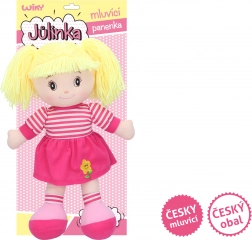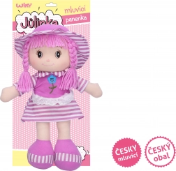 Objevte kouzlo mluvící Panenky Jůlinky, která dokáže povídat čtyři známé české říkanky, když jí stisknete bříško. Svým měkkým tělíčkem a roztomilým obličejem si rychle získá srdce vaší holčičky.
