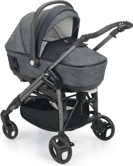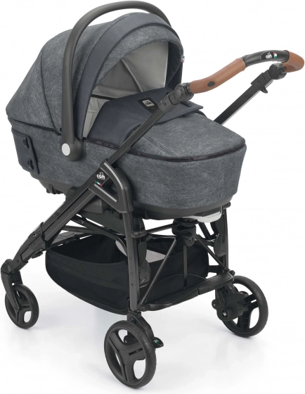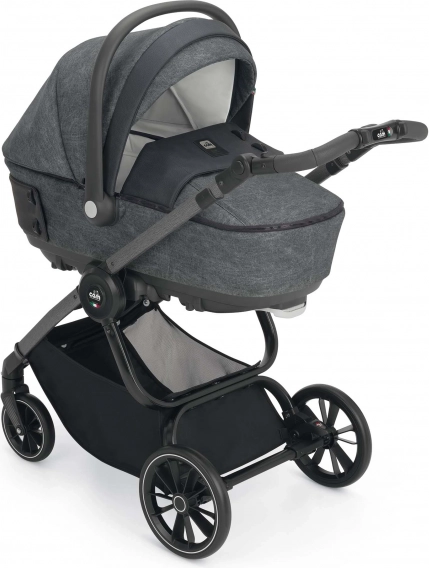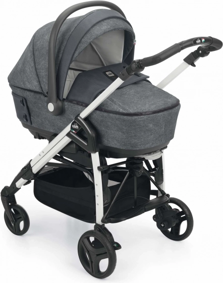V letních měsících oceníte integrované větrání v boudičce, v chladnu zase rychlé zapnutí nánožníku na zip. Po vyklopení vzpěr na spodku lze korbu využít jako kolébku a díky spodní pojistce snadno polohovat hlavičku dítěte. Sportovní sezení s 5bodovým pásem, polohováním zad i nožiček a dlouhou stříškou zajistí komfort až do 36 měsíců. Součástí setu je i moderní přebalovací taška a prostorný košík.