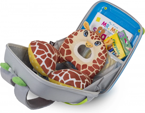 Batůžek GoVinci Blue/Green přináší chytré spojení zábavy a praktického úložného prostoru. Přední strana funguje jako galerie, díky které může dítě hravě vystavovat své výkresy a obrázky. Pevná konstrukce zároveň poslouží jako stabilní podložka pro kreslení doma i na cestách.