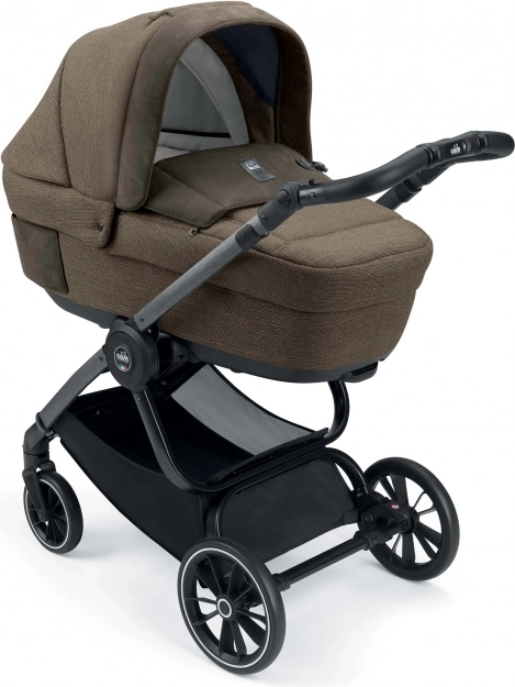 Po vyklopení vzpěr na spodku lze korbu používat jako kolébku. Díky pojistce na spodku korby lze výškově polohovat hlavičku dítěte pro správnou oporu a komfort. Součástí je také prostorné sportovní sezení s 5bodovým pásem, polohováním opěrky zad a nohou a dlouhou stříškou pro ochranu před počasím.