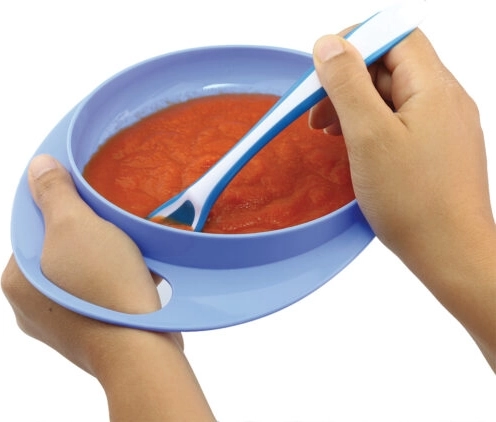 Vyvýšený okraj minimalizuje nepořádek a omezuje kontakt rukou s jídlem – ideální při učení samostatného krmení.