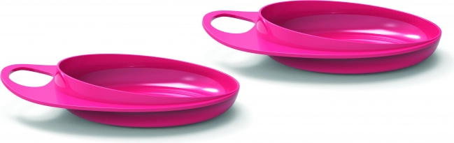 Díky praktickému kroužku po obvodu talíř snadno uchopíte vy i dítě. Lehký, odolný materiál je vhodný pro každodenní používání a příjemná pastelová růžová barva zpříjemní každé stolování.