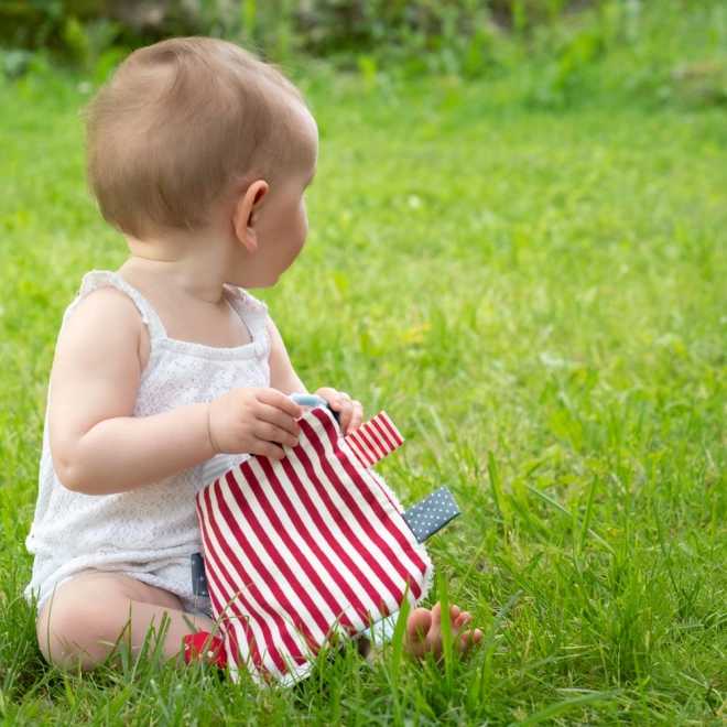 Mazlící muchláček Ocean Club s námořnickým designem, C-kroužkem a texturovými prvky pro radost a rozvoj děťátka.