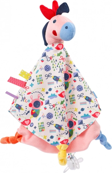 - Stimuluje smysly: Hlavička a zauzlené konce povzbudí dítě k uchopení, cítění a objetí.