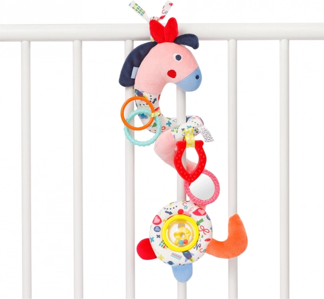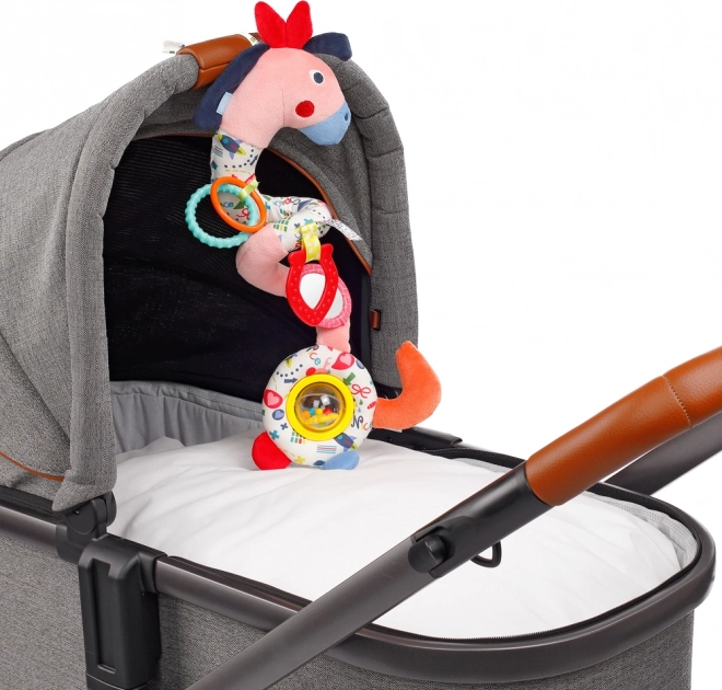Flexibilní spirálová konstrukce se snadno omotá kolem madla kočárku či autosedačky, případně ji pomocí dvou popruhů rychle připevníte i na postýlku nebo ohrádku. Hračka je tak ideální společník na procházky i cestování – a každé dobrodružství se promění v zábavný zážitek.
