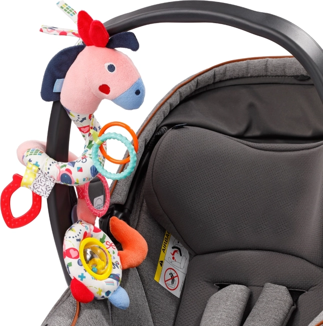 Spirálový tvar se jednoduše omotá kolem madla kočárku nebo autosedačky a drží na místě. Miminko má hračky stále na dosah a v bezpečné vzdálenosti.