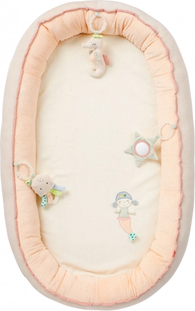 Vytvořte miminku útulné a bezpečné místečko pro spánek i hraní. Hnízdečko s motivem mořské panny kombinuje extra měkký velur a vzdušný mušelín pro maximální pohodlí. Díky zvýšenému polstrovanému okraji se dítě cítí chráněné a klidné, ať už doma, na pohovce, v postýlce nebo na cestách.