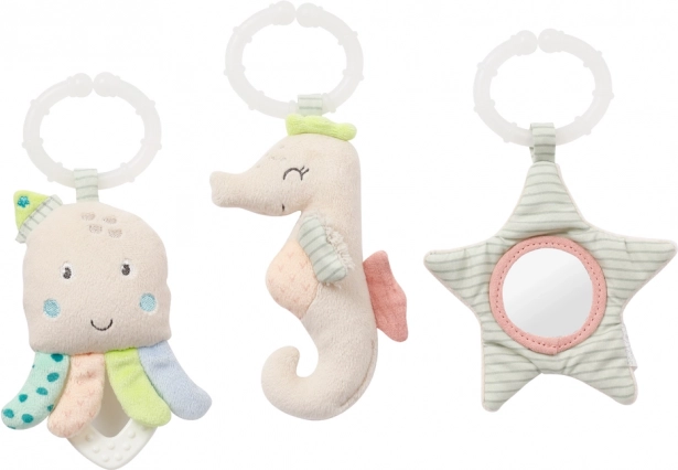 Mořští kamarádi s pískátkem, chrastítkem, šustěním a zrcátkem zabaví a podpoří rozvoj zraku i jemné motoriky.