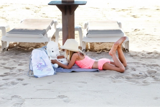 Hravý design s plážovým motivem navodí prázdninovou atmosféru a děti si vak zamilují na výlety i do školky.