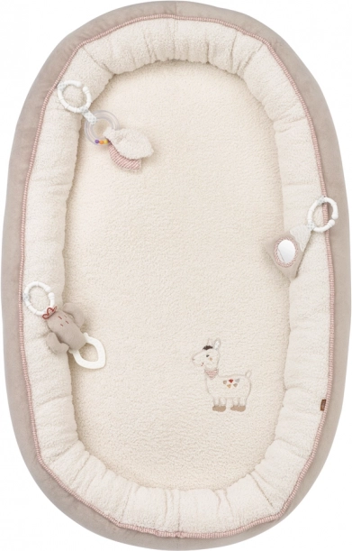Komfortní hnízdečko pro miminko v designu Peru poskytuje ideální kombinaci bezpečí a pohodlí. Extra měkký, polstrovaný okraj vytváří příjemně ohraničený prostor, ve kterém se dítě cítí chráněně. Všestranné využití: jako samostatná postýlka, vložka do postýlky, mazlící podložka nebo pohodlný pelíšek na pohovce.