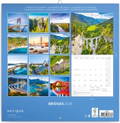 Poznámkový kalendář Notique Mosty 2025 je ideálním společníkem pro milovníky architektonických skvostů, kteří si zakládají na kvalitní organizaci času. Uchvátí vás nádherné snímky mostů, jež zprostředkovávají unikátní kombinaci lidské invence a umění v nejzajímavějších lokalitách planety.