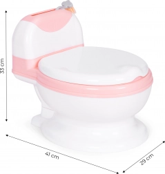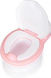 Zvedací víko a sedátko napodobují skutečnou toaletu, díky čemuž si dítě snadno osvojí správné návyky a používání WC.