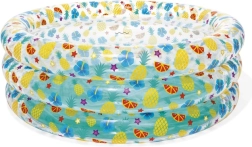 Tento stylový dětský bazének s transparentními stěnami a veselým ovocným motivem přinese do vaší zahrady tropickou atmosféru. Vysoké, měkké stěny poskytují příjemnou oporu a pohodlí, zatímco tříkruhová konstrukce zajišťuje stabilitu i při dovádění.