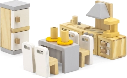 Objevte kouzlo dřevěné sady nábytku od renomované značky PolarB, která zahrnuje kuchyň a jídelnu. Tato sada je vyrobena z vysoce kvalitního materiálu a je ideální pro rozvoj dětské představivosti. Děti mohou vytvářet vlastní scénáře a aranžovat jednotlivé kusy podle svých představ.