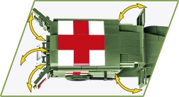 Model věrně zachycuje vzhled historické vojenské sanitky určené k záchranným misím.