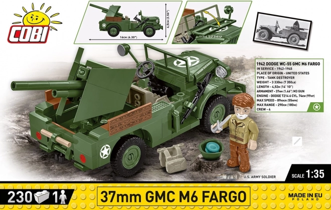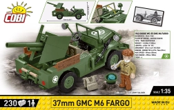37 mm GMC M6 Fargo je americké lehké obrněné vozidlo používané během druhé světové války. Vyvinuté na podvozku nákladního vozu Dodge WC, bylo vybaveno 37 mm protitankovým kanónem M3, což ho činilo efektivním v boji proti lehkým obrněncům a opevněním. Tento kostičkový model od značky COBI je vyroben v měřítku 1:35 a skládá se z 230 dílků.