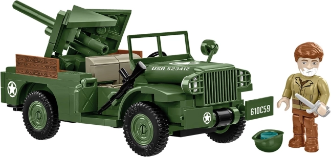 Model vyniká precizním zpracováním detailů, včetně speciálně navrženého dílku, který věrně napodobuje charakteristickou mřížku nákladních vozidel GMC. Model poskytuje místo pro řidiče a pasažéra, s kostičkovým kanónem umístěným na korbě. Sada obsahuje unikátní figurku vojáka americké armády, který přidává na autentičnosti a hravosti modelu, doplněnou o drobné příslušenství, jako je vybavení a puška.