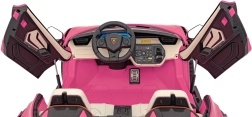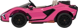 Stylové dětské elektrické autíčko inspirované legendárním Lamborghini Sian přináší dětem realistický zážitek z jízdy. Nabízí 4x100W motory, akumulátor 24V 9Ah, měkká EVA kola, ekokožená sedadla pro dva a otevírací výklopné dveře. Bezpečnost zajišťuje dálkový ovladač 2,4 GHz s funkcí Stop a bezpečnostní prvky. Bohatý audio panel s USB, AUX, Bluetooth a vestavěnými melodiemi potěší malé řidiče, zatímco LED světla vpředu i vzadu zvýrazní prémiový vzhled.