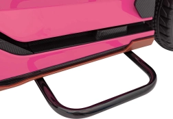Rodiče mají vše pod kontrolou díky ovladači 2,4 GHz se zastavením na jeden klik a volbou 3 rychlostí. Děti ocení bohaté osvětlení LED, barevný audio panel s USB/AUX/Bluetooth, zvuky motoru při startu a tlačítka na volantu. Autíčko nabízí místo i pro doprovod rodiče a praktické výsuvné stupačky.