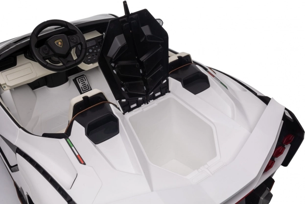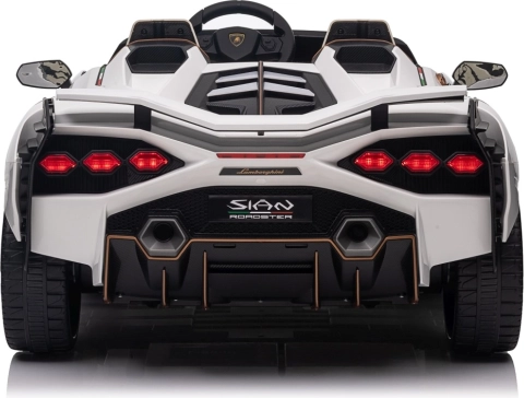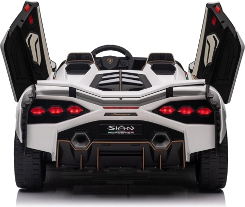 Stylové dětské elektrické auto inspirované supersportem LAMBORGHINI SIAN nabídne dvě sedadla z ekokůže, silný pohon 4x100 W, baterii 24 V a měkká EVA kola pro pohodlnou jízdu. O bezpečí se stará 2,4 GHz dálkové ovládání s funkcí Stop, o zábavu pak multimediální panel s MP3/USB/AUX/Bluetooth a realistické LED osvětlení vpředu i vzadu.