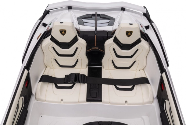 - Pohodlí a design: dvě sedadla z ekokůže (22 × 20 × 26 cm každé), autentické detaily LAMBORGHINI, otevírací dveře, LED světla vpředu i vzadu.