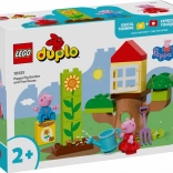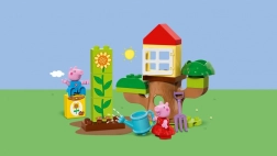 LEGO DUPLO Peppa Pig Zahrada a domek na stromě je ideální pro děti od 2 let. Sada obsahuje různé interaktivní doplňky, jako jsou konvička a vidle, které povzbudí malé děti k péči o přírodu. Hra s tímto setem pomáhá rozvíjet dovednost řešení problémů, vytrvalost při pěstování rostlin a vyjadřování emocí během hraní rolí.