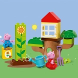 Kreativní hračka obsahuje dvacet komponent včetně postaviček Peppy a Georgea. Děti mohou trávit čas v zahradě nebo si hrát na schovávanou. Domek na stromě navíc poskytuje prostor pro odpočinek nebo hry skrze okno na pantech, čímž děti rozvíjí koordinaci a jemnou motoriku.