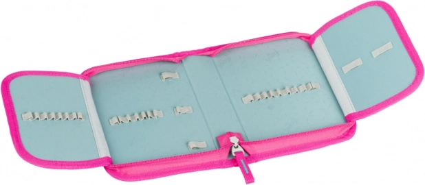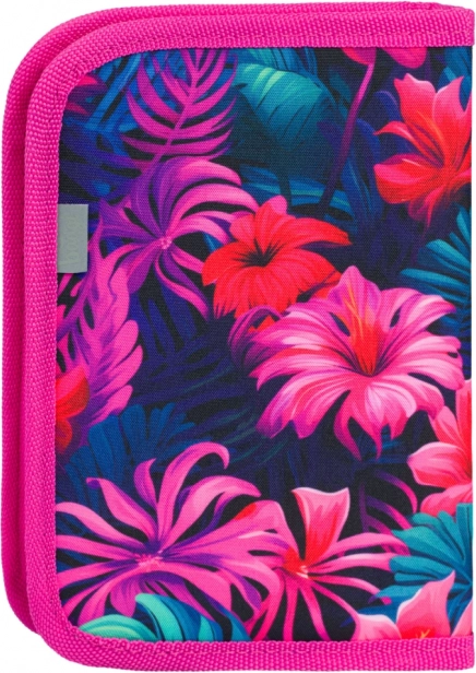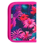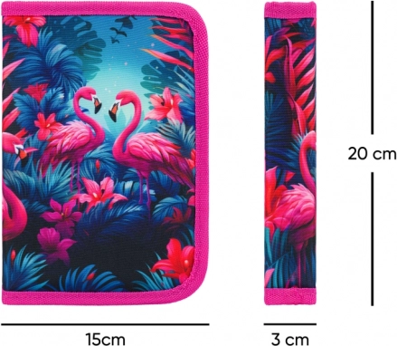 Výrazný potisk plameňáků a tropických květin v růžovo‑modrých odstínech dodá penálu hravý vzhled, který si děti zamilují.