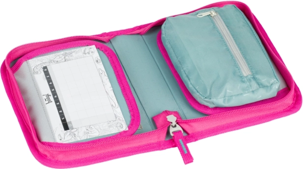 Odolné zapínání na zip YKK zajišťuje dlouhou životnost i při každodenním používání. Trendy motiv plameňáků v růžovo‑modrých tónech potěší školáky, kteří chtějí originální doplněk. Penál je dodáván bez náplně, takže si ho snadno přizpůsobíte podle sebe.