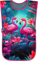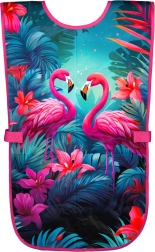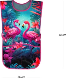 Praktické dvě kapsy v dolní části pojmou štětce, pastelky i drobné pomůcky, zatímco nastavitelné popruhy zajistí, že zástěra dobře sedí dětem různého věku. Stylový motiv plameňáků s tropickými prvky nadchne každého malého tvůrce.
