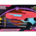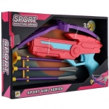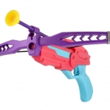 Barevná plastová kuše se třemi šípy na přísavky nabízí bezpečnou a zábavnou střelbu na cíl pro děti.