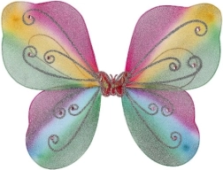 Křídla jsou pestrobaverná, což přidává jedinečný pohádkový nádech každému kostýmu.