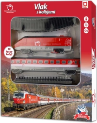 Vlaková sada Železniční Společnost Slovensko je ideální dárek pro všechny milovníky železnic a malé inženýry. Sada obsahuje lokomotivu, vagón a soubor kolejí, které lze snadno složit do kolejiště o rozměru až 147 x 121 cm, což přináší realistický a vzrušující zážitek z jízdy.